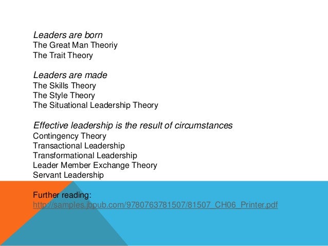 In current clinical settings effective clinical leadership ensures a high quality health care system that consistently provides safe and efficient care. 4 review of leadership theory a review of the leadership literature reveals an evolving series of schools of thought from great man and trait theories to transformational leadership see table. The theory was first introduced as life cycle theory of leadership.