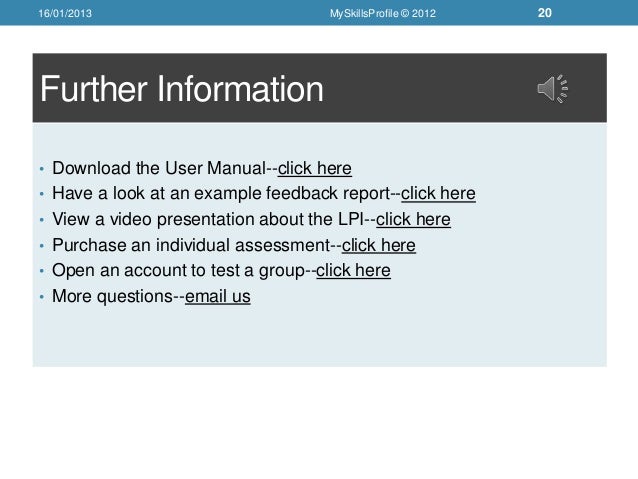 Hi dan the topic of leadership development is one that i have had trouble getting my head around but i like how you laid everything out line by line. Profiles self assessment forms and comparative statements for the ils.