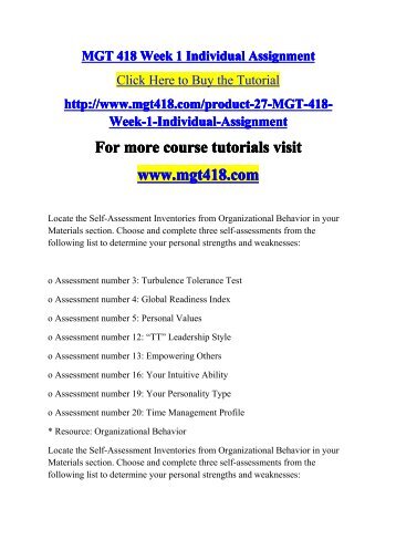 Mgt 418 Week 1 Individual Assignment Self Evaluation 2 Sets By
