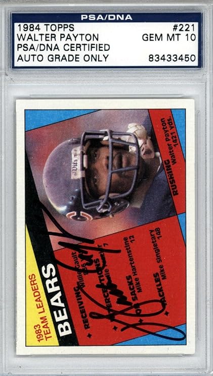 1984 Topps 221 Chicago Bears Team Leaders Walter Payton Psa 10