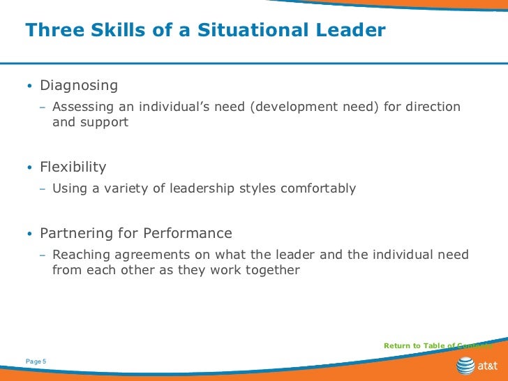 Provides managers with the skills necessary to diagnose the situation and adapt their leadership style to the performance needs of others. In these six conversations situational leaders use the three skills of a situational leader to align on goals development levels and leadership styles. Situational leadership is the model of choice for organizations around the world that want to develop people and groups and establish rapport.