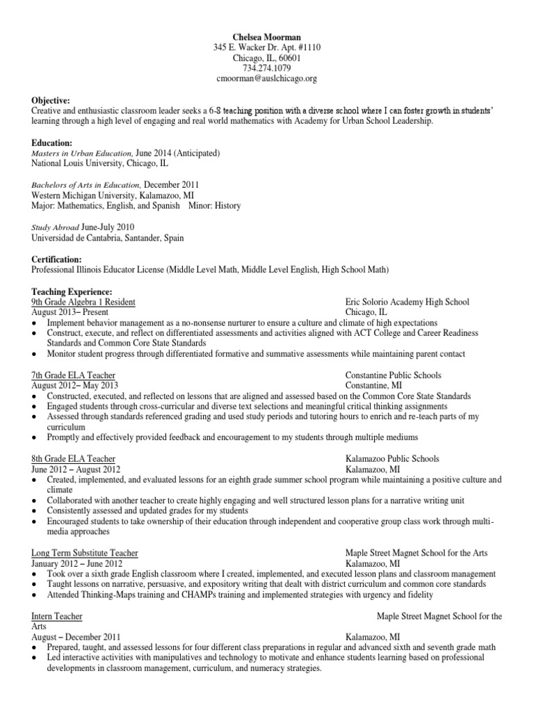 Chelsea Moorman Resume Common Core State Standards Initiative