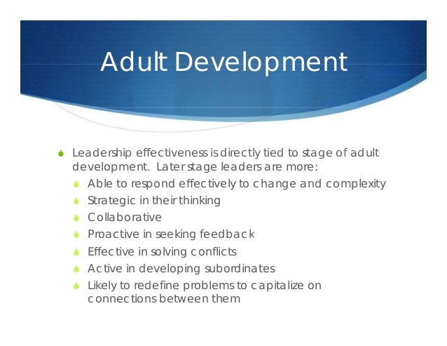 Adult development theory leadership development how people change and develop during their adult years is of fundamental importance to leadership development. Adult development theory helps us to understand the work required to become a leader who can thrive in a volatile uncertain complex and ambiguous world.
