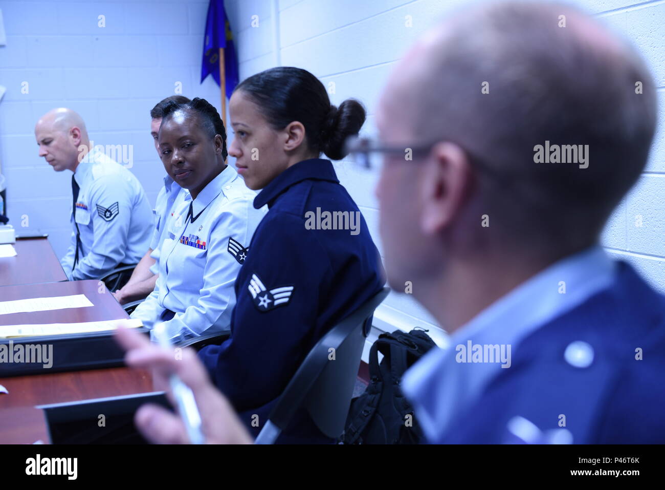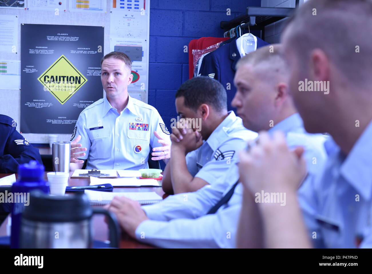 A U S Air Force Airman Speaks During An Airman Leadership School