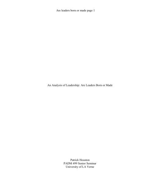 Research Papers On Whether Leaders Are Born Or Made