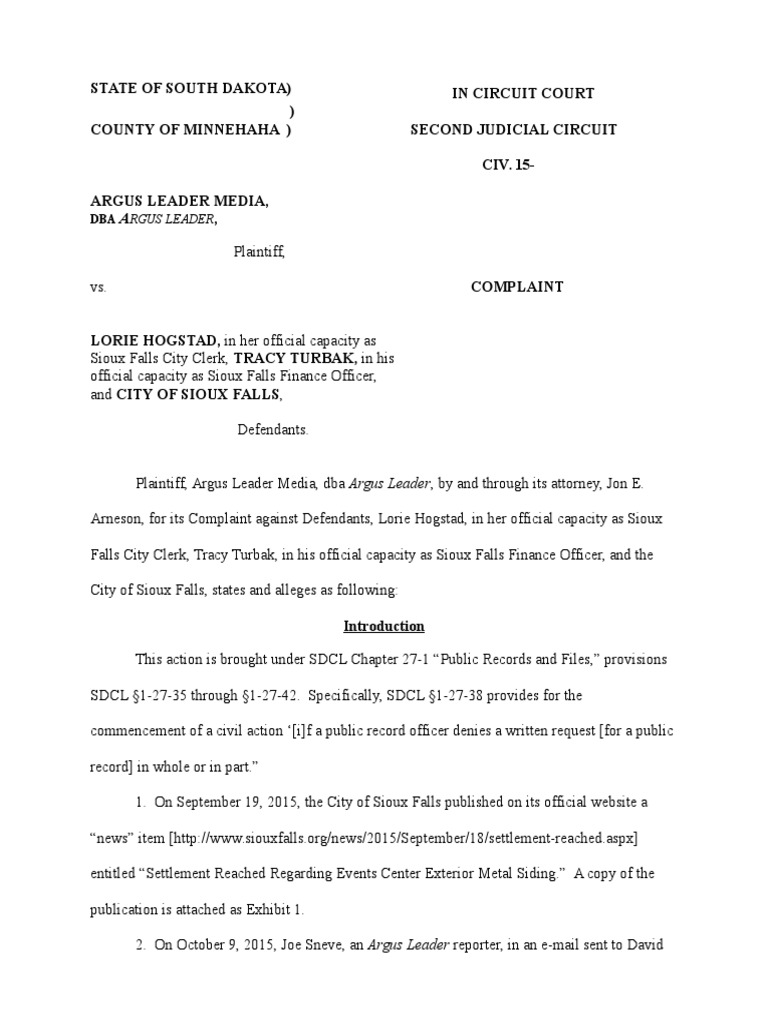 Argus Leader Vs City Of Sioux Falls Wisconsin Circuit Courts