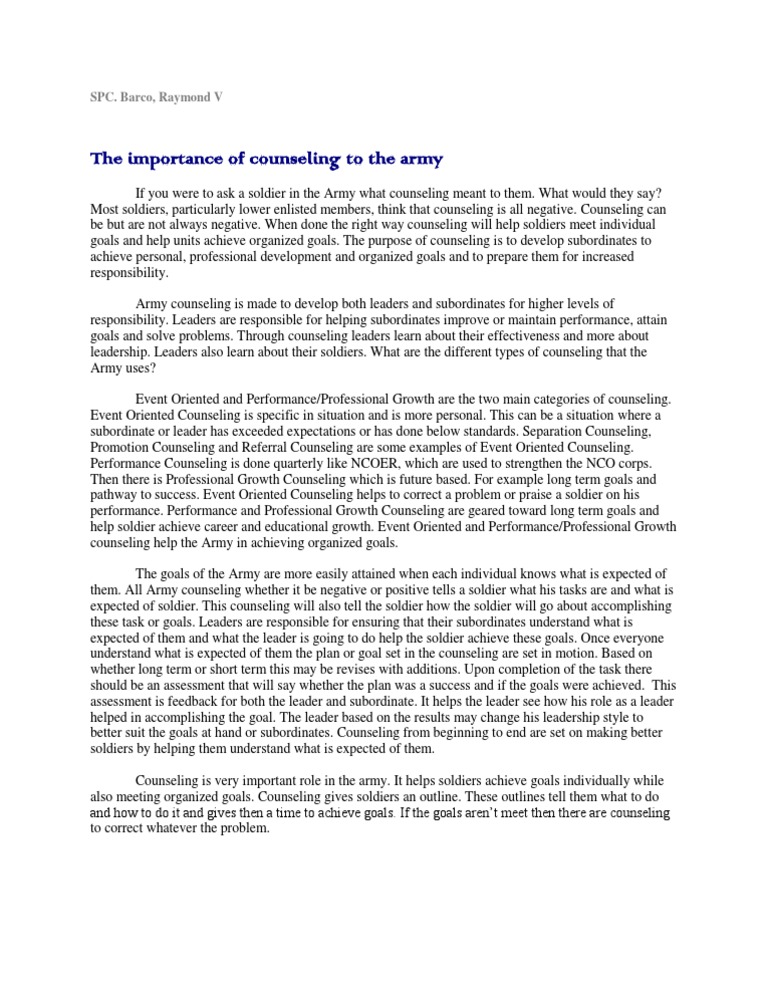 Leadership Counseling Army Counseling Online