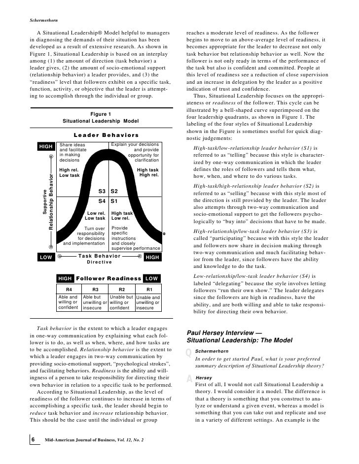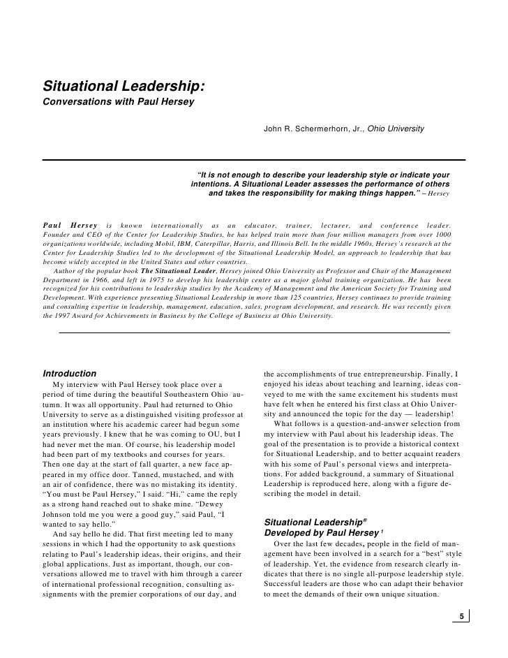 Article leadership situational. In response to the early criticisms of the trait approach theorists began to research leadership as a set of behaviors evaluating the behavior of successful leaders determining a behavior taxonomy and identifying broad leadership styles. Situational leadership theory or the situational leadership model is a model by paul hersey and ken blanchard developed while working on management of organizational behavior. This article explains the styles effectiveness and interaction in a practical and recognizable manner.