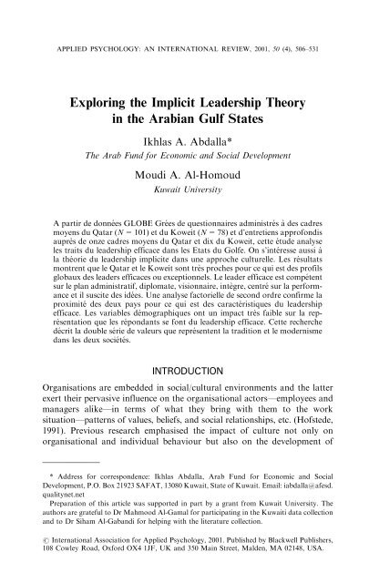 Exploring The Implicit Leadership Theory In The Arabian Gulf States