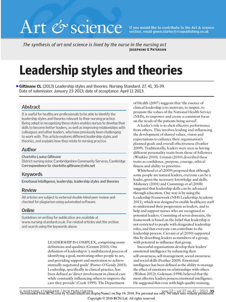 Article on nursing leadership. The selection of articles also demonstrates how. Effective nursing leadership 0. Most cited nurse leader articles.