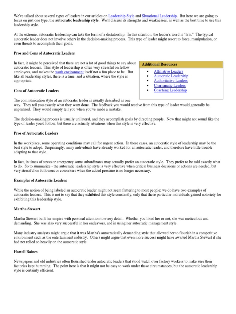 Autocratic Styles Of Leadership Autocratic Styles Of Leadership
