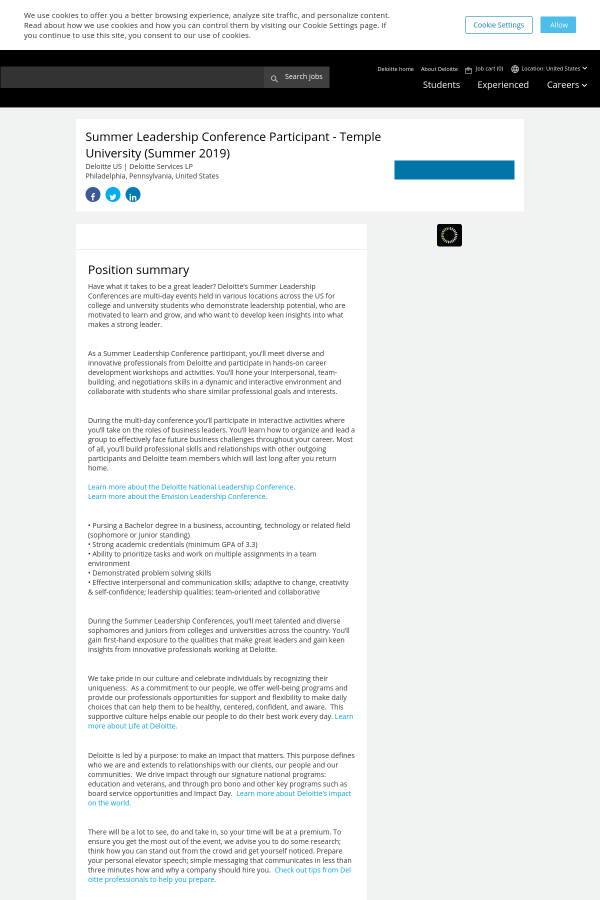 Summer Leadership Conference Participant Temple University Summer