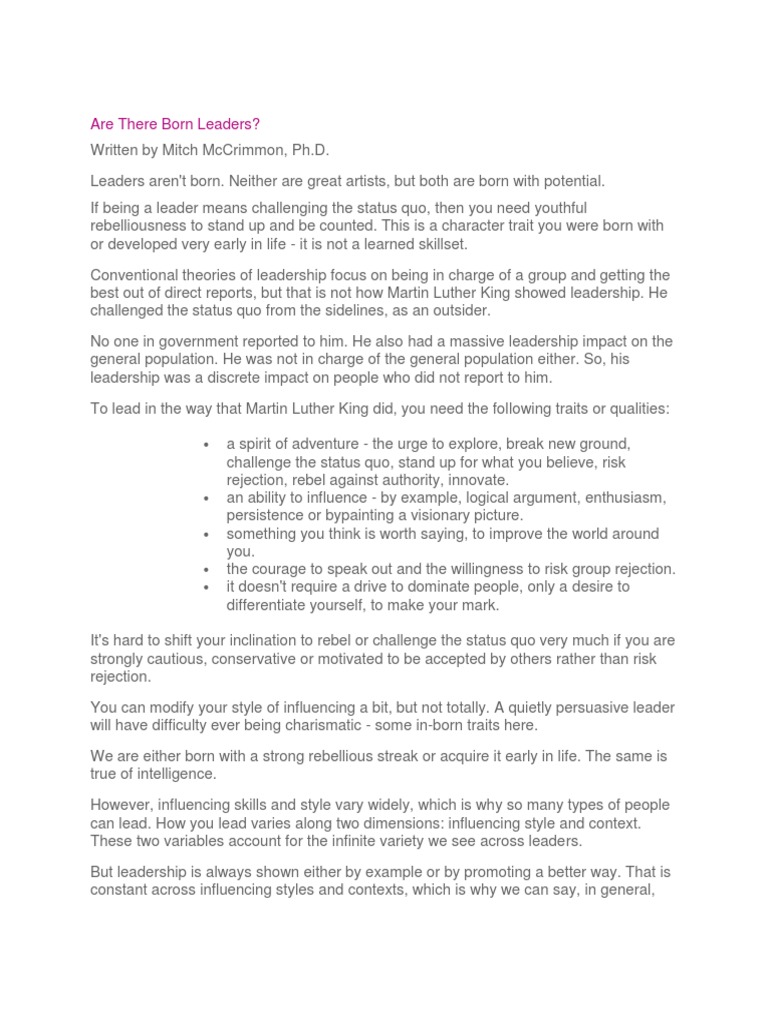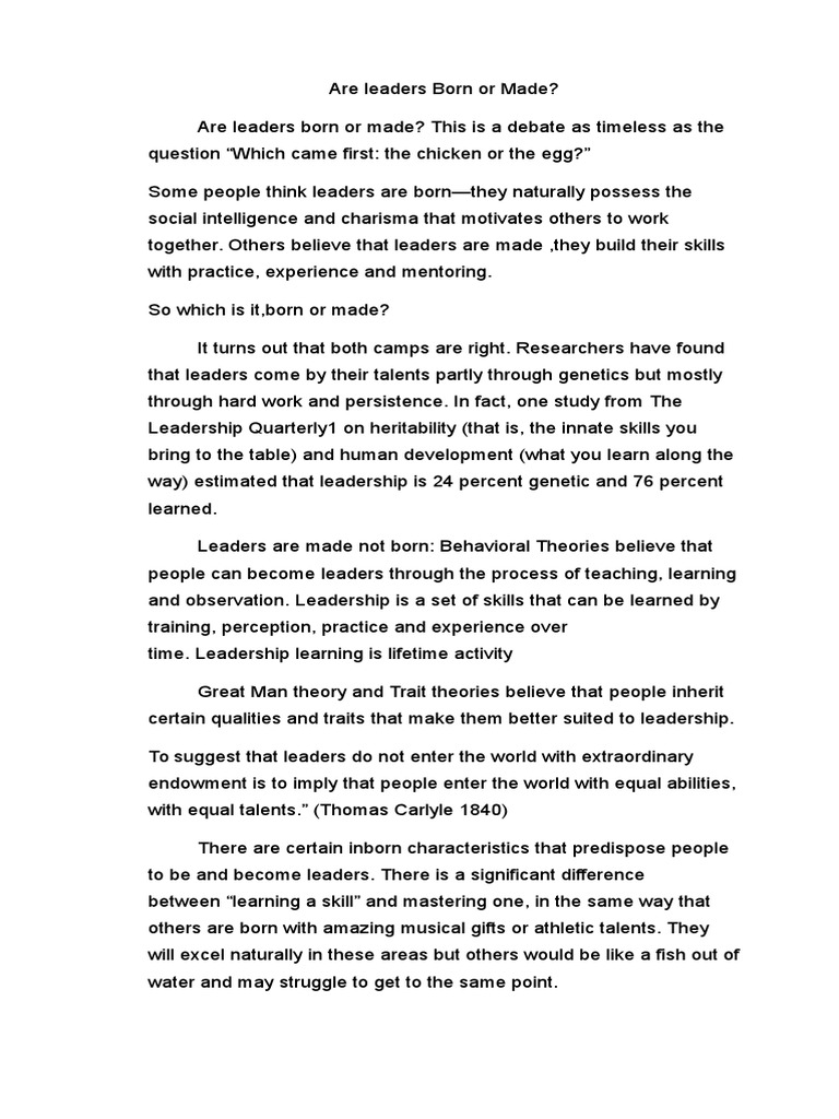 Good Leaders Born Or Made A Brief Analysis Of Leadership