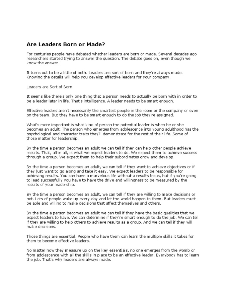 Are Leaders Born Or Are They Made Linked 2 Leadership