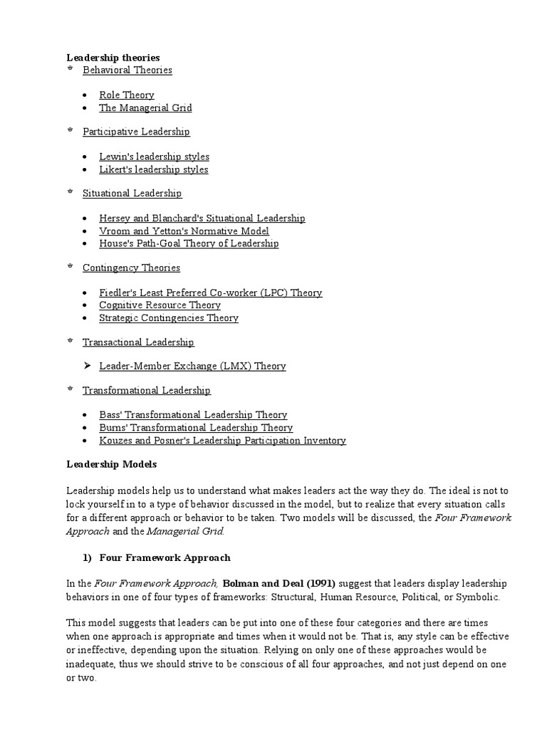 A Management And Leadership Theories Transformational Leadership