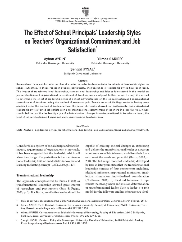 Pdf The Application Of Transformational Leadership Theory To