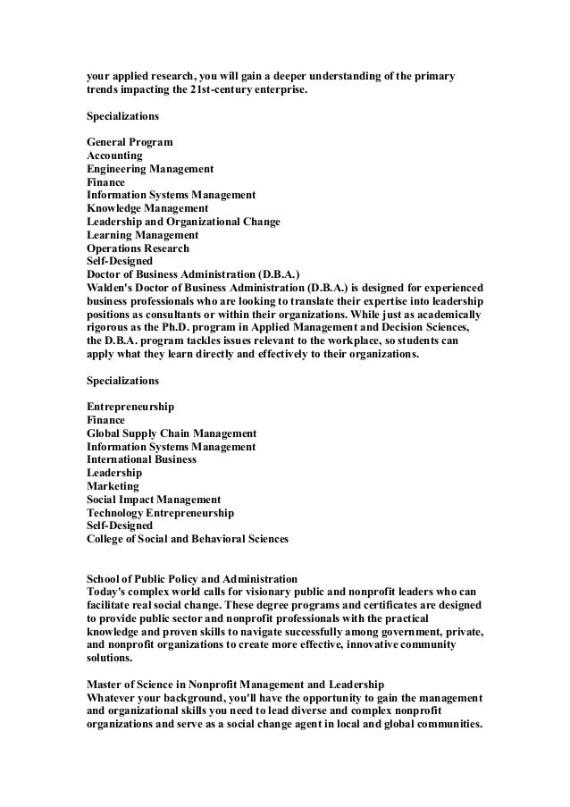 Most online dba business degrees programs focus on the application of theories and techniques to prepare you for leadership roles. Wgus online master of science in management and leadership degree consists of balanced areas of study relevant to the needs and demands of a competitive marketplace competency based. Doctor of management dm.