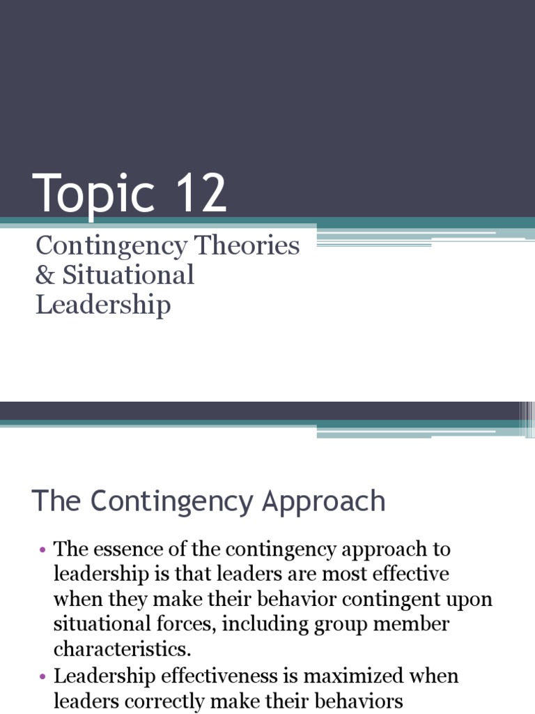 Topic 12 Contingency Theories Situational Leadership Leadership