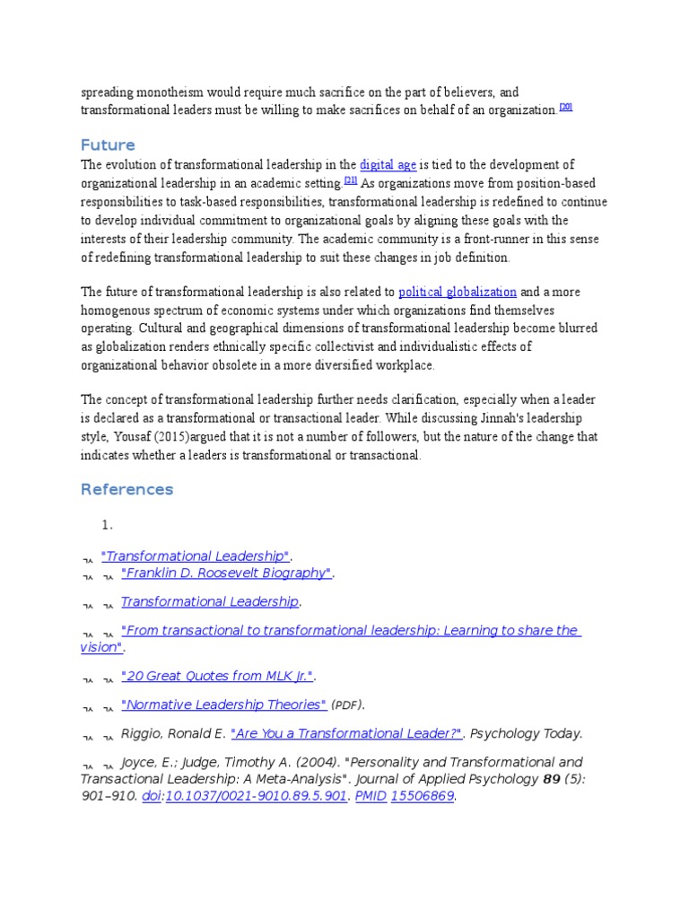 Transformational Leadership An Introduction To Leadership Pdf Hrma